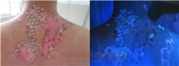 病 史:患者于2年前前发现背部出现白斑,由烫伤导致一直治疗未停,效果不明显,病情加重扩散至大半背,今来我院治疗。